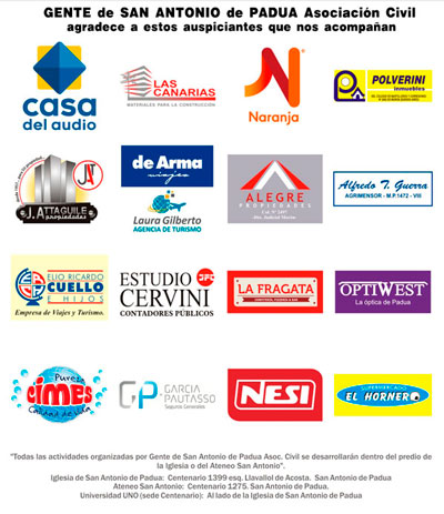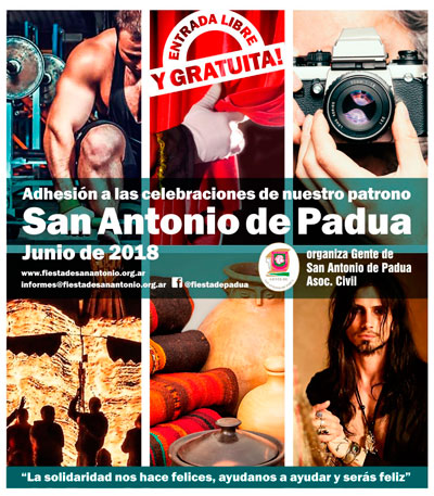 | Gente de San Antonio de Padua Asociación Civil Comisión Directiva www.fiestadesanantonio.org.ar informes@fiestadesanantonio.org.ar Facebook: fiestadepadua |