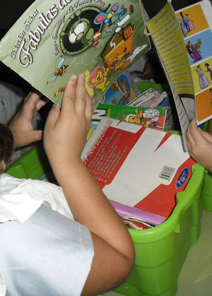 -11 cajas plásticas para bibliotecas para el aula a la E.P. Nº 62